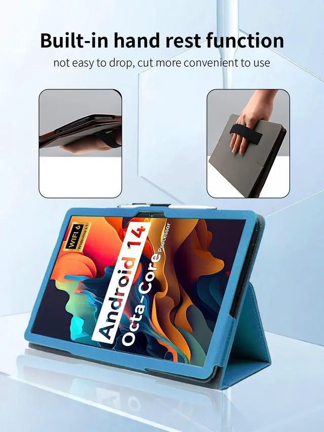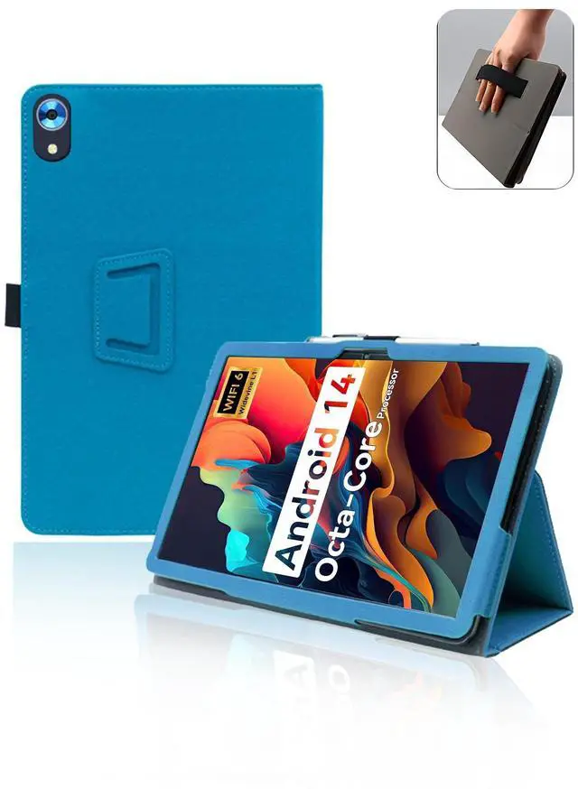 Case for Urao C107 Android 14 Tablet 10.1 Inch 2024 Upgraded,Leather Slim Folding Stand Cover with Hand Strap Magnet for Men Women Full Protection,Light Blue.