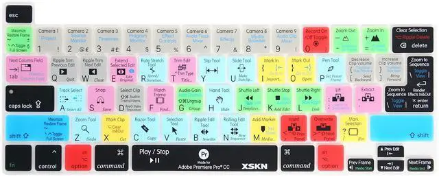 : Item typekeyboard skin/protectorSuitable device2019 released New MacBook Pro 16 inch A2141 and 2020 released New MacBook Pro 13.3 inch A2251 A2289 A2338 M1 Keyboard US and EU universal versionProduct materialSilicone materialProduct shortcuts keyboard designPremiere Pro CC Shortcuts design in English, QWERTY character layout, US and EU universal versionProduct protectionUpper side adopted rubber coating, gives you a comfortable soft touch feeling and protect the keyboard cover from losing color; lower side is shiny surface, make the keyboard cover fit perfectly on your keyboard without any sticker/glueProduct