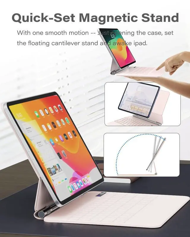 ^^ Easy-Set Laptop-Style: Simply attach your iPad to the ipad pro 11 inch keyboard case magnetically, and with one smooth motion, set the floating cantilever stand. Just open the case to the perfect angle for typing or browsing like a laptop. ^^ Trackpad and