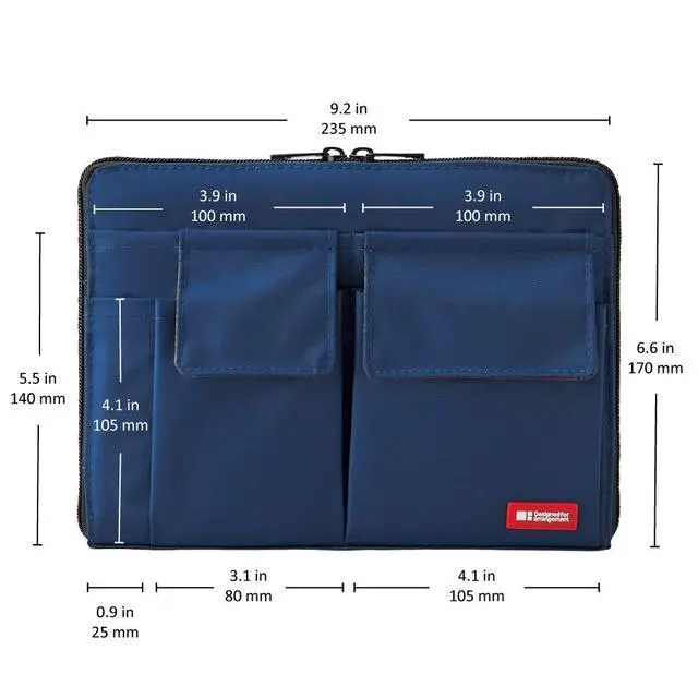 Insert's slim design fits comfortably into larger bags and helps keep contents more organized