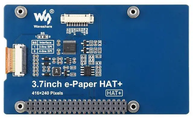 Ideal for use in price tags, shelf labels, industrial instruments, and more, this e-Paper screen allows you to create innovative, sustainable solutions for a variety of use cases. Package include1. 3.7 inch e-Paper HAT+ (G) 12. MX 1.25 9PIN cable 13. Screws pack 1