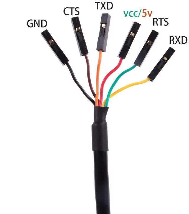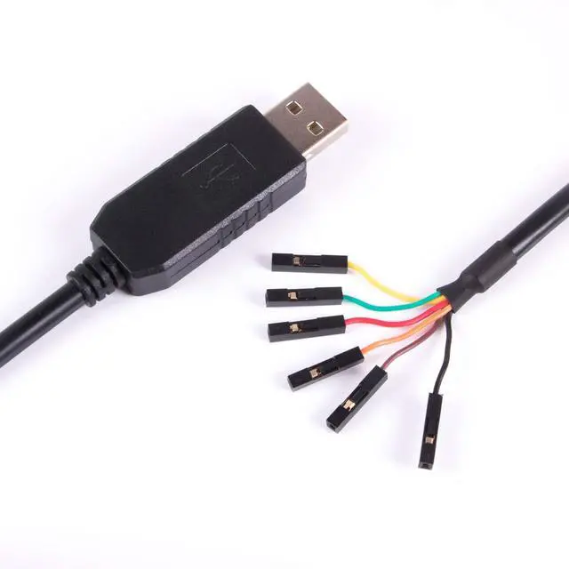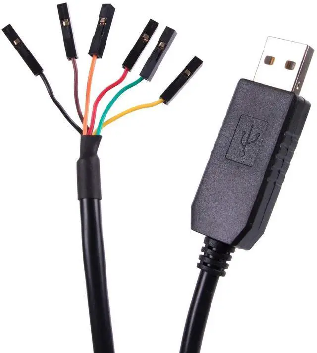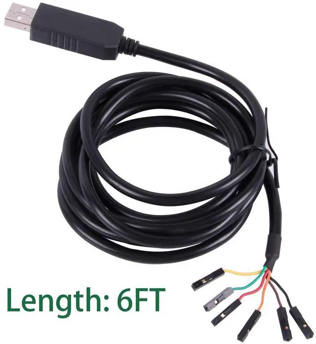 1.8 mConnector: USB to TTL Serial Adapter 6Pin 0.1" pitch FeMale Socket CableThis USB TLL serial converter is built with FT232RL chip, FT232RLs royalty-free VCP allow for communication as a standard COM port; a great conversion data cord to meet with your needs of debugging, boot-loading, programming, etc.