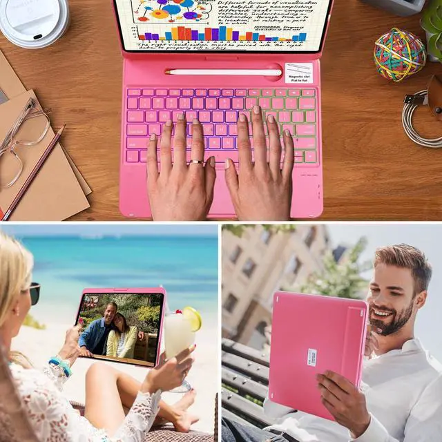 ENHANCED TECHNOLOGY: the RGB color backlit keyboard allows you to use your iPad at all hours, day and night. Not to worry if you drift off - the case works with your device's auto sleep/wake function to keep safe all the important things you may be working on ^^