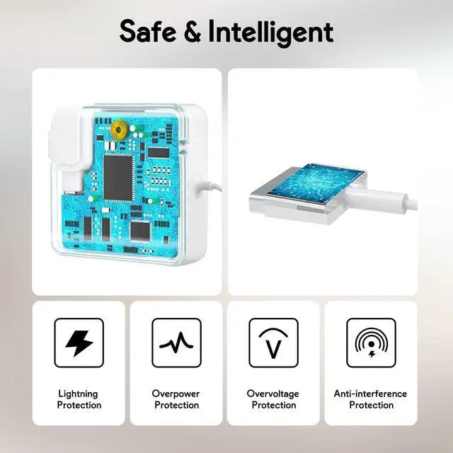 ^^ Compatible models: Designed to match your Macbook Pro 17-inch, 15-inch and 13-inch laptops A1398, A1424, MC975, MD506, ME293, ME294, ME664, ME665, MGXA2, MGXC2 ^^ Built-in IC chip technology provides overload/short circuit protection/overload protection/overheat protection. We test each charger to ensure a tight, strong magnetic connection.