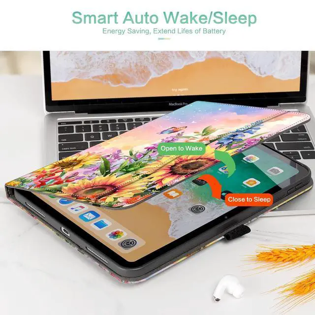 Number: A2696 / A2757 / A2777 / A3162)Full Body ProtectionMade of reinforced external PU leather dual layer construction and soft internal microfiber lining to give you 360 full protectionSmart Auto Sleep/WakeMagnetic iPad 10th Gen Cover instantly wakes up iPad when opened, and makes it go to sleep once closed (extend battery life). Upgraded Anti-slip StripesWith three anti-slip stripes, you can adjust it to multiple stable angles, holding up great for viewing, video watching and reading at home, or presenting at your meeting. Convenient Hand StrapBuilt-in hand strap, coupled with an elastic band to keep the case OPEN, give you a comfortable single-hand use experience. External Elastic BandWhen you don't use it, strap help you more firmer to fix your ipad. Do not have to worry about loss and loose. Front Document PocketDocument Pocket is designed for you to store your business cards, Cash, bank cards, notes or bills while going outside. Pencil HolderStylus Loop is more convenient save your Apple Pencil.