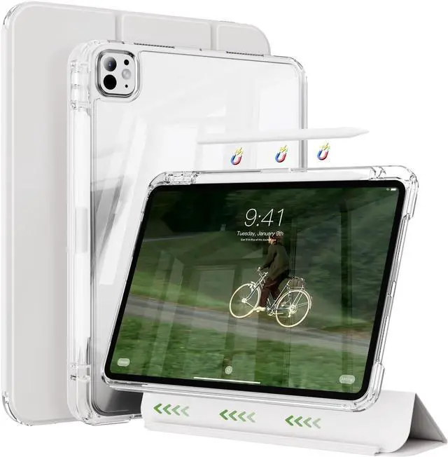 ^^ Full Protection: The transparent hard-shell back cover protects your iPad from shocks, drops, and impacts. The surface is soft and silky, providing a comfortable touch to the skin. You can clearly see the iPad logo through the back cover, while it showcases the original beauty of your iPad.