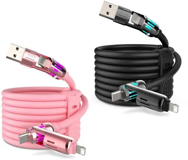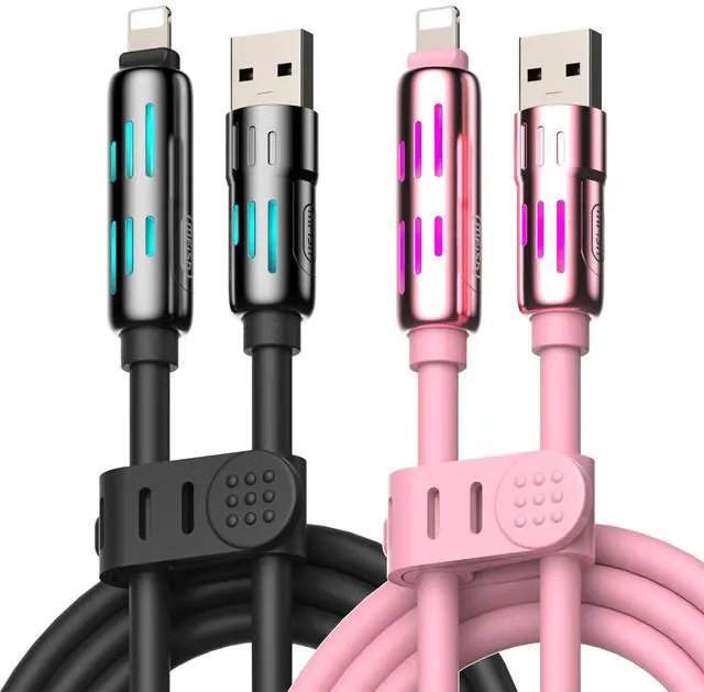 ^^ High-Speed Data Transfer Sync files at up to 480Mbps with USB 2.0 supporttransfer photos, videos, or documents in seconds. Whether for work or play, the MFish cable keeps both your power and data flowing smoothly. ^^ Built Tough with a Soft Touch Constructed with thick 6.0 mm silicone, this cable is soft, flexible, waterproof, and resistant to fraying or tangling. Reinforced zinc alloy connectors add premium strength, tested to survive 30, 000+ bends for long-term reliability. ^^ RGB Charging Glow Style Meets Function Integrated with a soft, color-changing RGB light that cycles through blue, red, green, and purple while charging.