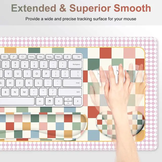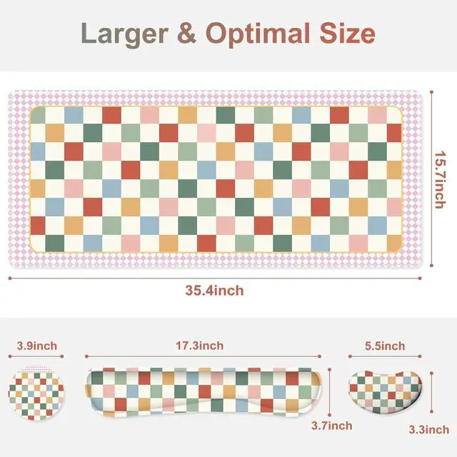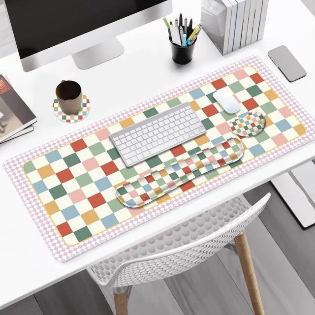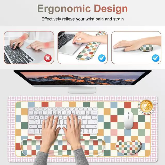 You deserve to have our comfortable typing relief mouse pad set 35.415. 7 IN Desk Mat + Keyboard Wrist Support + Mouse Wrist Rest + Coaster for DrinkMore unique pattern design desk pad set available for choice. A different mouse pad Will add some artistic personality to your life, unique style colors desk mat set will be a chic office desk decor and a good desk organizer, bring you a good mood, and increase work&study efficiency. This office desk accessories will be a wonderful gift for friends, family, classmates, and colleagueFeatures Wrist rest for computer keyboard and mouse with ergonomic design, filled with breathable memory foam materials, plays a role in minimizing discomfort and soreness from work and study.