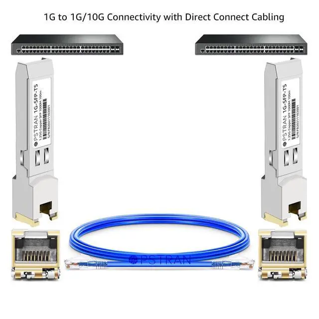 the 10/100/1000BASE-T SFP RJ45 Copper Transceiver Module supports up to 100m link lengths over a copper connection via a RJ-45 connector. Built-in high performance Chip, Max. Power Consumption 1.2W, Commercial Temperature Range 0 to 70C (32 to 158F) ^^ Tested in Targeted Switches for Superior Performance, Quality, and Reliability. We owns compatibility LAB facilities to meet the EEPROM coding and writing requirements with various brands of the latest and advanced networking equipments to ensure the compatibility. ^^ Fully Metallic Enclosure enabling for Low EMI, Compact RJ45 Connector Assemblies Ensure Uninterrupted Network ^^ Hot Pluggable SFP MSA and RoHS Compliant to Maximize Uptime and Simplify Maintenance ^^ 1000 BASE-T operation in host systems with SERDES interface, Compliant to IEEE IEEE Std 802.3 and 802.3 ab Gigabit Ethernet