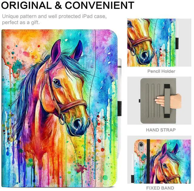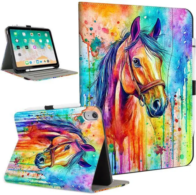 Lokigo Case for iPad (A16) 11th Generation 11 Inch 2025, iPad 10th Generation Case 10.9 Inch 2022, Multi-Angle Viewing Protective Tablet Cover with Pencil Holder, Horse