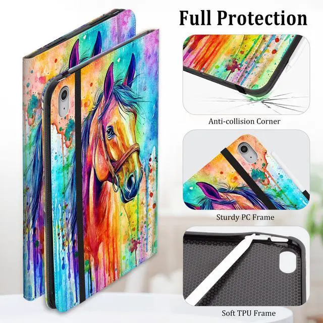 Lokigo iPad 11th Generation Case 2025, iPad 10th Generation Case 2022, Apple iPad A16 Case, 10th Gen iPad Case, Multi-Angle Viewing Protective Stand iPad Case 10th/11th Generation, Horse