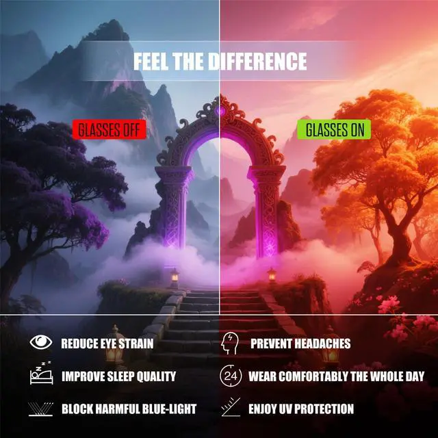This glasses reduce eyestrain and headache, improve your sleep quality. Bring you better sleep and better spirits ^^ Gaming Glasses - When Facing the screen for a long time absorbs a lot of blue light, will cause eye fatigue and migraines. FEISEDY gaming glasses protect your eyes from blue light exposure during extended gaming or screen use. Improive your gaming experience. Perfect for gamers and computer users protecting eye health ^^ Product