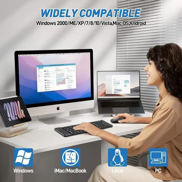 mode: press and hold FN, then press 1, and then press and hold for 3 seconds, the blue light flashes, and bluetooth device 1 enters the seached state on the device side-open the system settings-turn on bluetooth -search and add. ^^ the portable folding keyboard mouse combo supports connect up to 3 devices mode switching; support switching back and forth across devices, connect 5.0 version to hibernate and wake up faster; with high frequency equipment switching, the keyboard works smoothly; ^^ Multi-System Compatible, this folding keyboard mouse combo supports connect up to 3 devices, Its widely compatible with Windows, Android, iOS, Mac OS, perfect for laptops, desktops, Phones and more devices, the low-profile scissor keys give you excellent feedback and stability, you can type the key quietly.