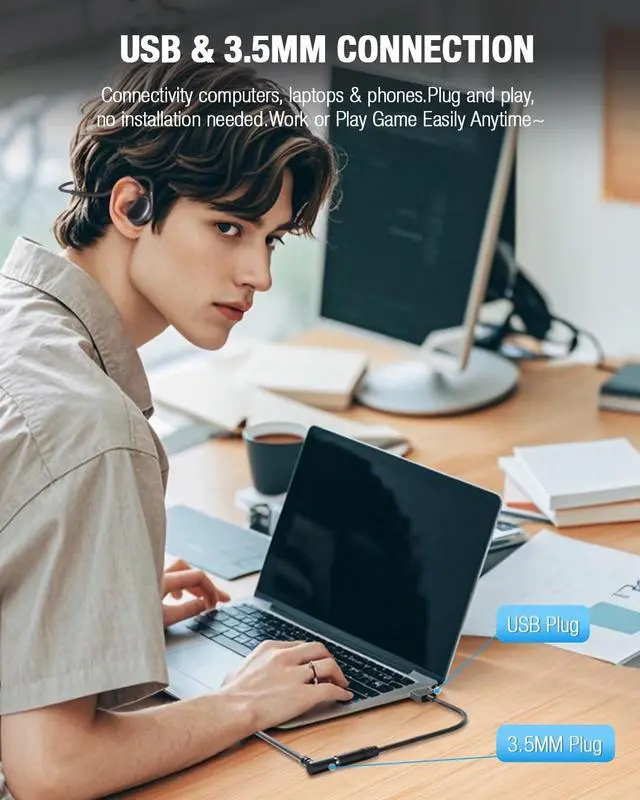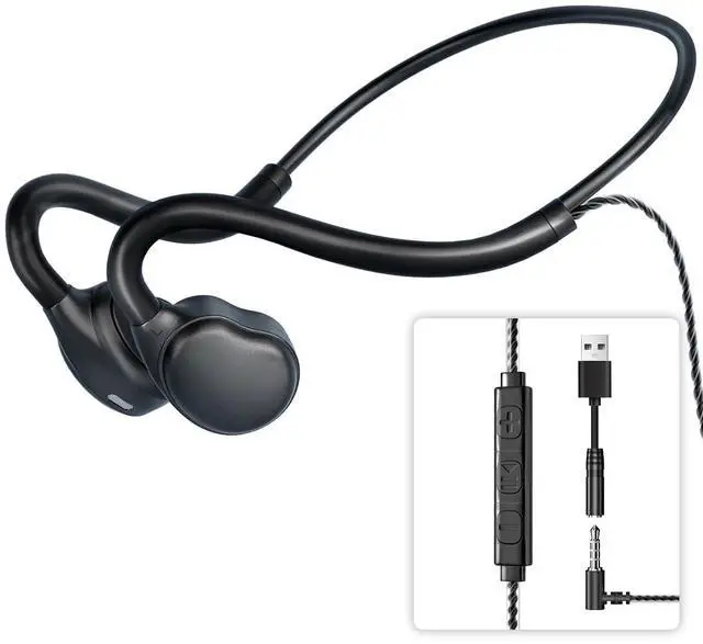 [ 3.5 mm Open Ear Headphones Comfort & Ultra-Safe] QOEKUEY wired headphones adopt a completely innovative open-ear and super comfortable design, USB headset ensures that nothing will be in or covering your ears, it will not cause pressure or pain in your ear canals, Ensuring ALL-DAY comfort; While you enjoy to calls, music, game, or videos, still hear your surroundings at the same time, perfect for Home Office Online Class Skype Zoom. ^^ [Air Conduction Technology & HIFI Stereo Surround] Air conduction wired headphones with Mic are based on the principle of air conduction, effectively transmit ultra-clear sound quality.