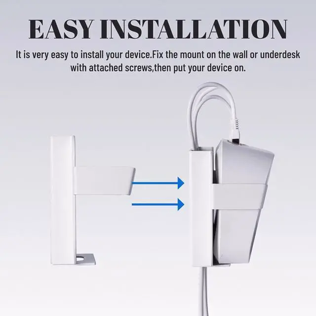 ^^ Barriel design on the front of the mount could keep your device on multi-direction. You could fix the mount uptowards, or to the left/right side as per your demands. ^^ it is very easy to install your device. Fix the mount on the wall or underdesk with attached screws, then put your device on. ^^ It can be fitted on any place you want, be convenient for you to connect your electronic devices. It can be placed in your living room, bedroom and office etc., not only improves the work efficiency of your network, but also helps to keep your space more clear.