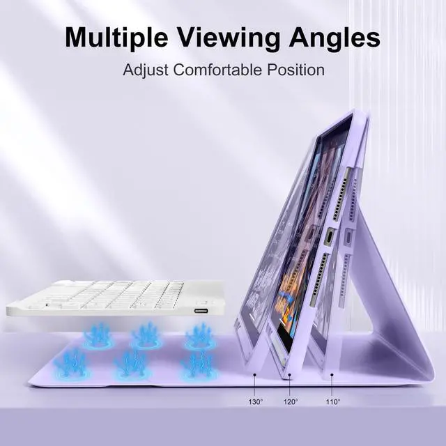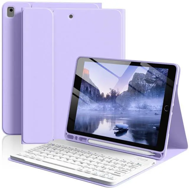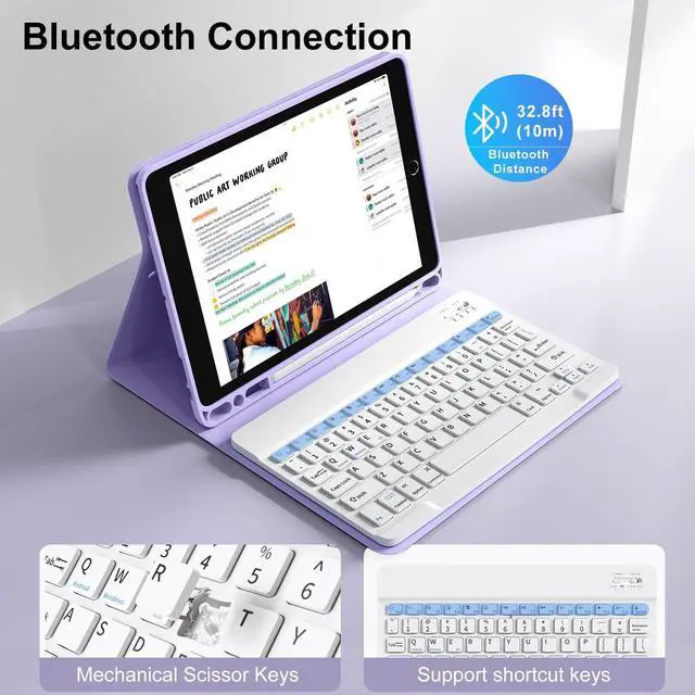 Material]: Our for iPad 9th/8th/7th keyboard cover is made of high-quality PU and TPU, which is soft and smooth, giving it a luxurious feel. Maximum protection for your iPad from drops and scratches. The silky smooth surface resists friction and fingerprints, providing a comfortable feel against your skin. And it is ergonomically designed, suitable for most office workers, students and computer workers.