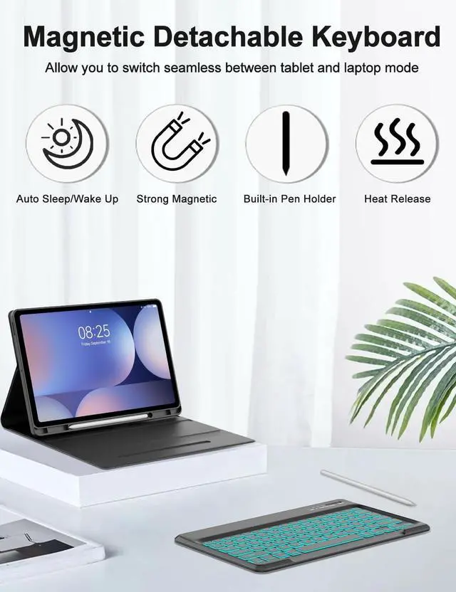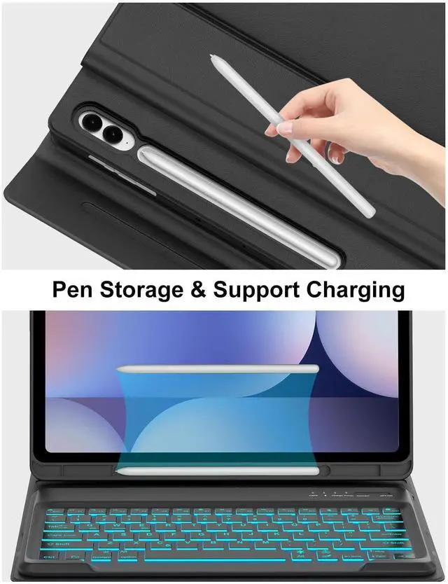 Easy of Use / Galaxy 12.4 inch Tab KeyboardTransform your tablet into a powerful productivity tool with our tablet keyboard case for samsung galaxy. This teclado galaxy tab s10plus offers a seamless typing experience. Keyboard FunctionallyMagnetically detachable super slim 5mm and light weight bluetooth keyboard with 10M range. And the book cover keyboard tab s9 fe + with strong magnetic keyboard gives you a stable platform for typing that won't move easily. Stylus Pen HolderThis touch keypad for galaxy case is designed with pen holder, grab your pencil effortlessly whenever you want, easily to carry your pencil with your device.
