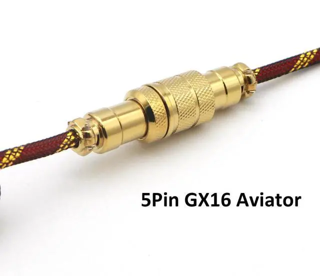 KCSJXF Reverse Coiled Type-C Cable for Gaming Keyboard, Double-Sleeved Mechanical Keyboard Cable with Gold Metal GX16 Aviator, 1.5M USB-C to USB-A (Gold Red)
