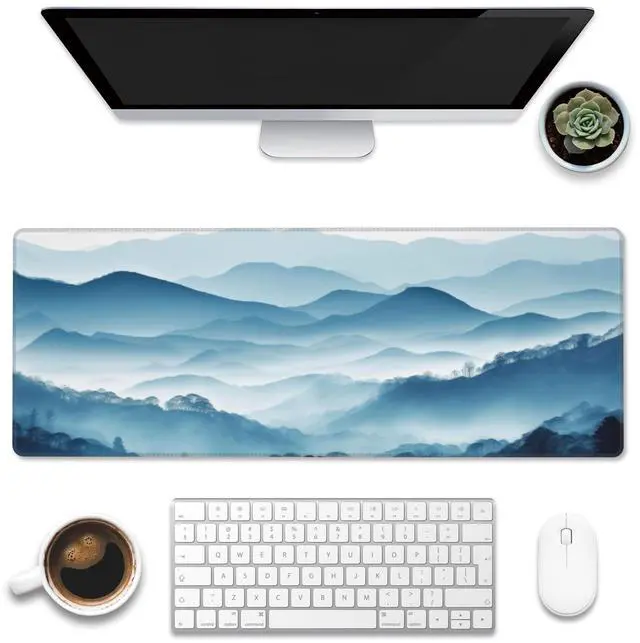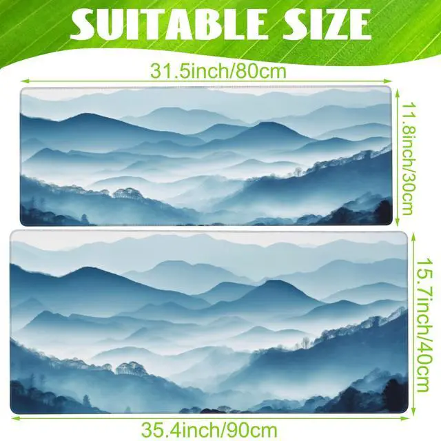 Eflxamz Large Gaming Mouse Pad for Desk,Mountain Desk Mat,Misty Forest Mountains Desk Pad,Extended Big Computer Keyboard Mouse Pad with Non-Slip Base and Stitched Edge,31.5"x11.8"
