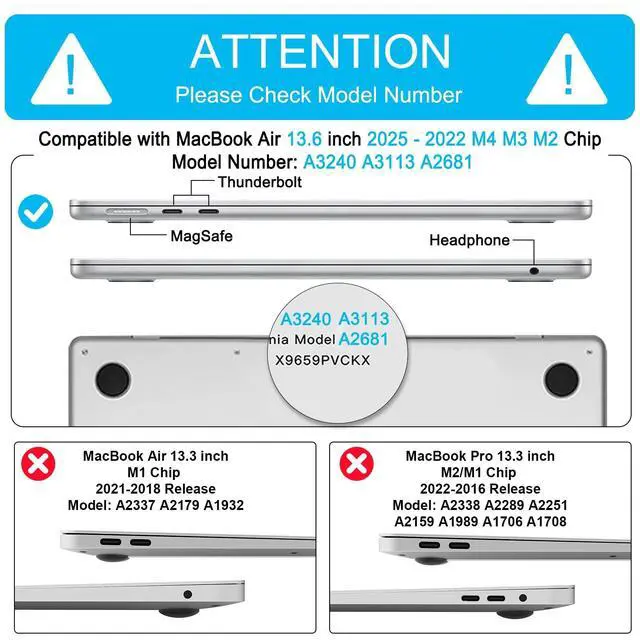 Model Compatibility: Only compatible with Newest MacBook Air 13.6 inch 2025 2024 2023 2022 Release M4 M3 M2 Chip with Liquid Retina Display & Touch ID (Model: A3240 A3113 A2681). Please kindly check the model number "AXXXX" on the back of the laptop before your purchase. Not compatible with other MacBook models ^^ Elegant Bowknot