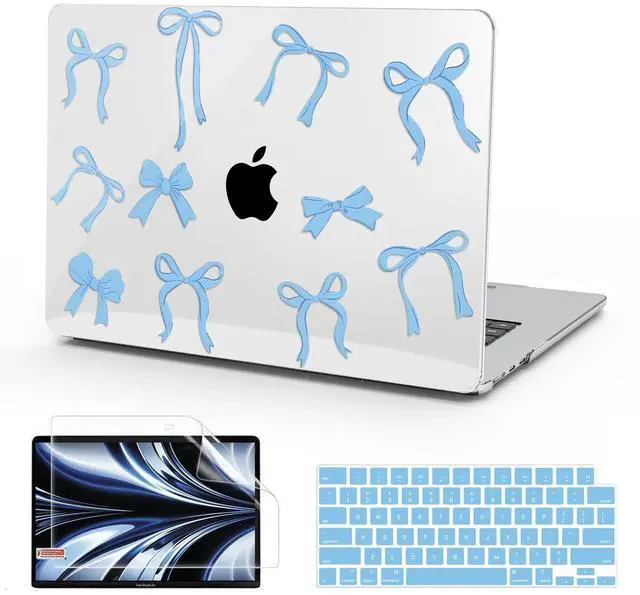 Complete Bundle: The package includes 1 blue bow top case, 1 matte clear bottom case, 1 blue keyboard cover, and 1 screen protector. Additionally, please get in touch with us if you encounter any problems with our macbook air 13.6 inch case, we will work to make it right