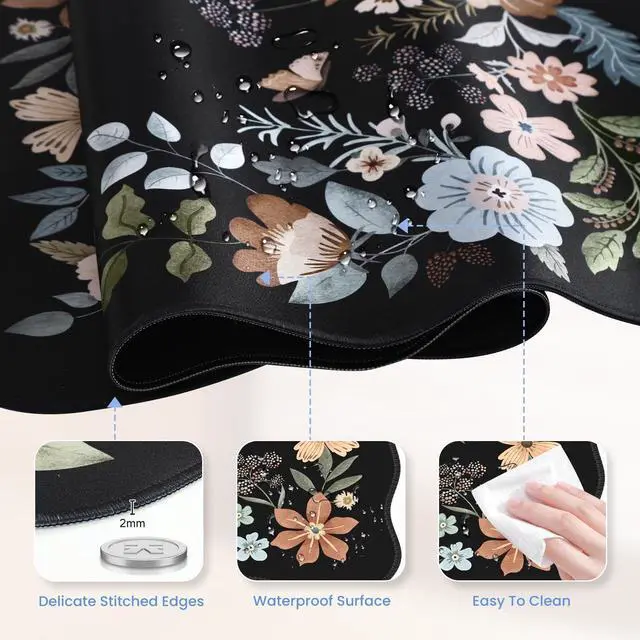 Elegant Wave-Shaped Design: This floral desk mat features a unique wave design, breaking the monotony of traditional rectangles. Its dense edge stitching adds durability and a refined touch, making your workspace both functional and artistic ^^ Generous