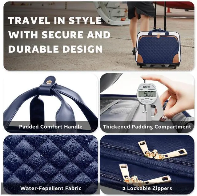 Waterproof Pockets & Superior Protection: Designed with built-in waterproof pockets, this laptop bag with wheels for women protects your valuables from unexpected spills. Or you can place wet clothes. The padded laptop compartment secures laptops up to 16 inches. 5mm waterproof-coated polyester on the bottom and sides prevents damage from scratches and bumps ^^