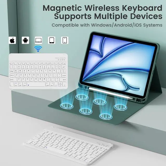 Magnetic Detachable Bluetooth Keyboard: For iPad Air 11 inch case with keyboard comes with a magnetic detachable lightweight Bluetooth keyboard. The wireless keyboard pairs with your tablet quickly via BT connection, and magnetically firmly attached to the case, It supports carrying around, which is convenient for entertainment and office