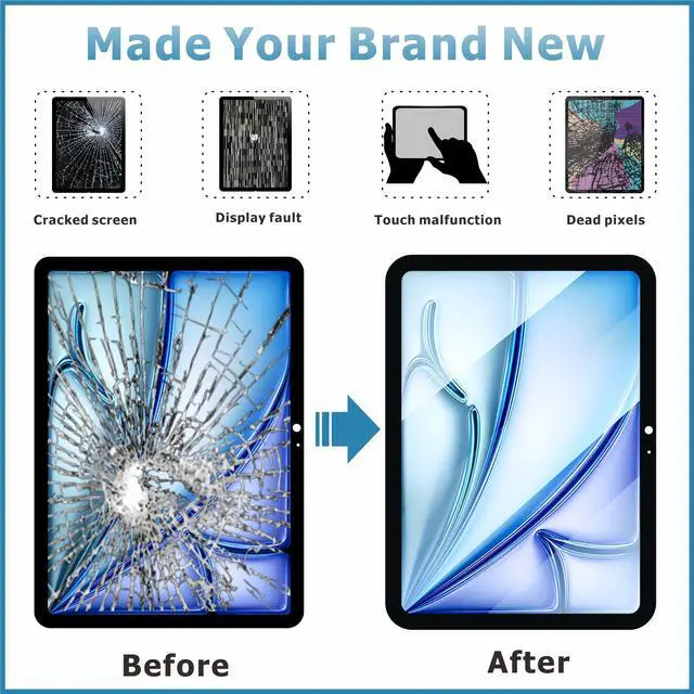 ^^ Superior Quality: Our for iPad Air 6 6th lcd screen replacement with full perspective, anti-fingerprint, smooth touch. And our screen replacement for iPad Air 6 have passed rigorous quality control checks and we will pack them well before shipment.