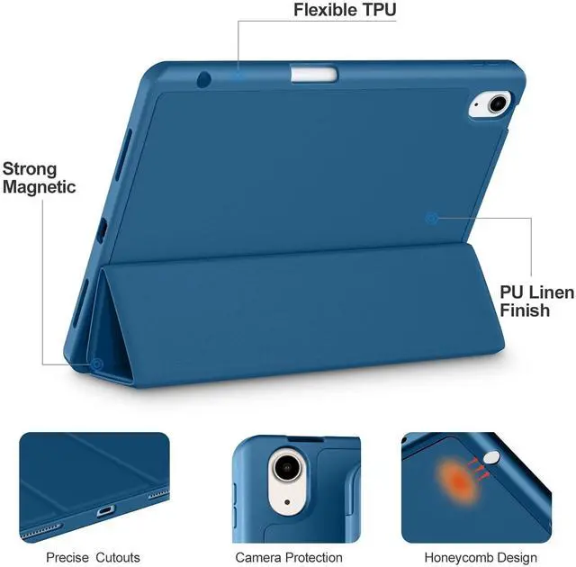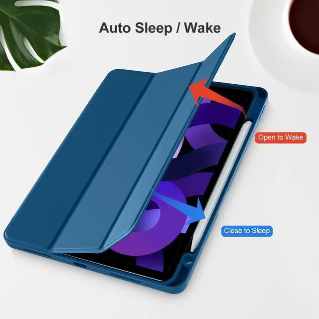 Auto Sleep/Wake Cover: The built-in magnetic strip is designed for iPad Air case 11 inch and Air 5/4 10.9 inch case automatically wakes or puts your tablet to sleep when the lid is opened and closed, protects and extends battery life. Easy access to all features and controls even with the case on ^^