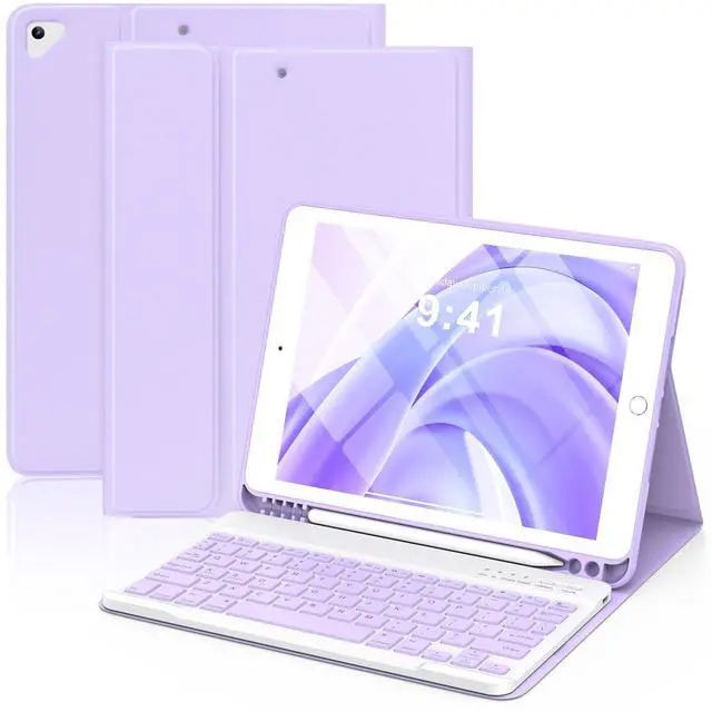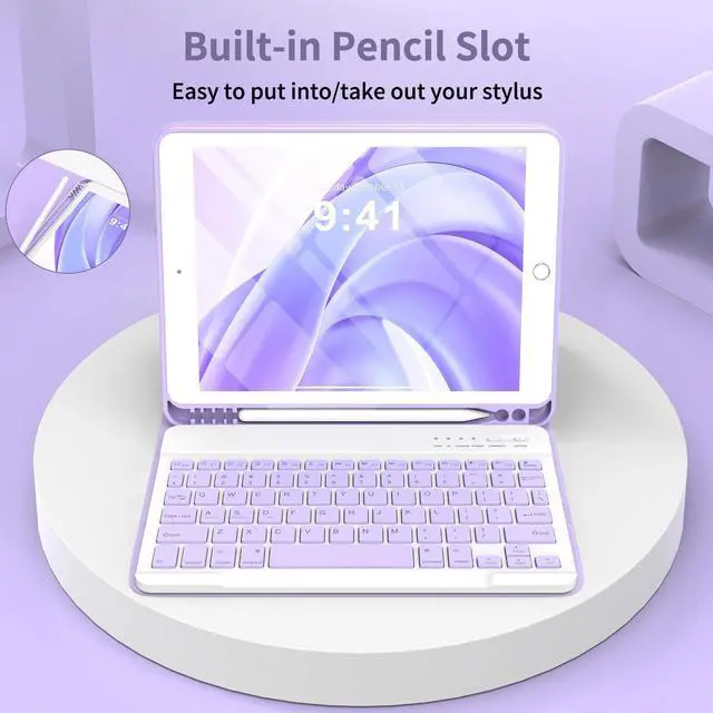 Pencil Holder: Keyboard case for iPad 9th generation built-in pencil holder, easily to carry your pencil with your device(Note: Pencil is not included). Hole in bottom of the pencil holder for easy access to your pencil ^^ Slim Wireless Keyboard for iPad 9th