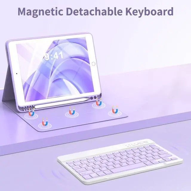 Generation: Keyboard for ipad 9th generation is ultra-thin, easy to carry, easy to put into a briefcase, handbag or backpack. Detachable bluetooth keyboard for ipad 8th generation combines with our industry-leading keyboard design and adds more spacious scissor-structure keys for a more relaxed and tactile typing experience ^^