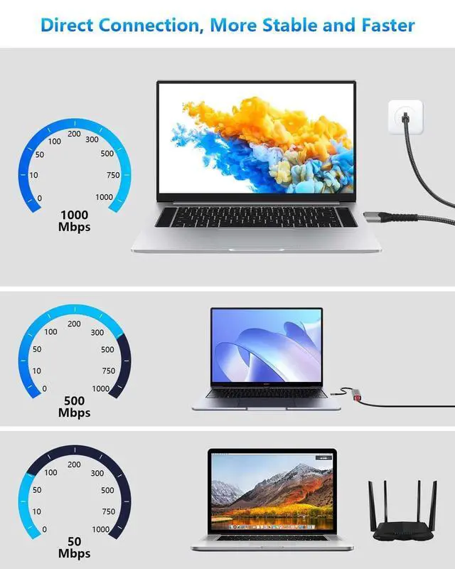 A Novel Solution: Plug and play, no extra accessories needed, This this USB C to RJ45 ethernet cable connects your computer or device directly to a router, modem, or network switch for network connection. In addition, the adapter also supports features such as Jumbo Frames, VLAN tagging, and WakeonLAN (WOL), providing a multifunctional network solution for homeand enterprise users.