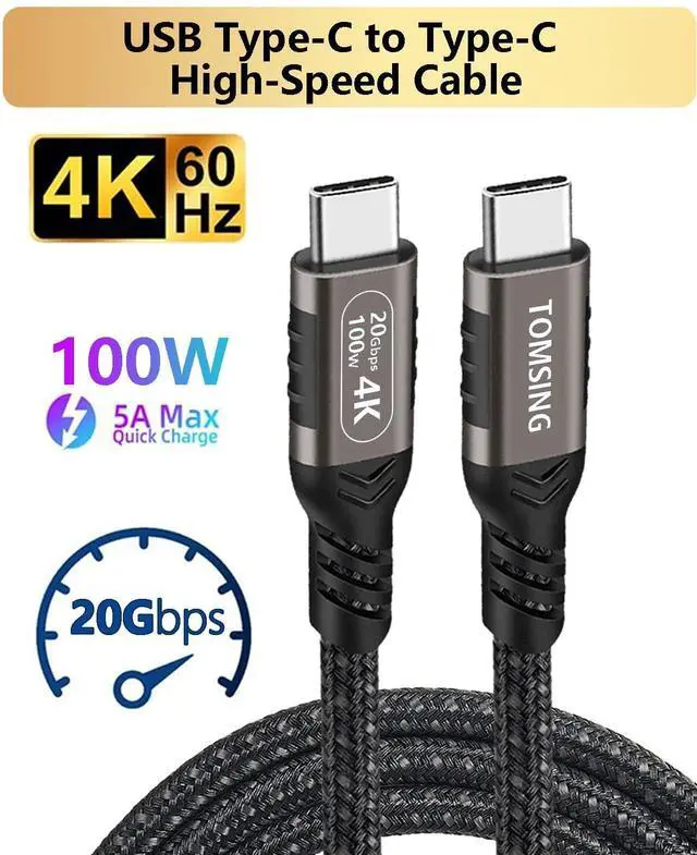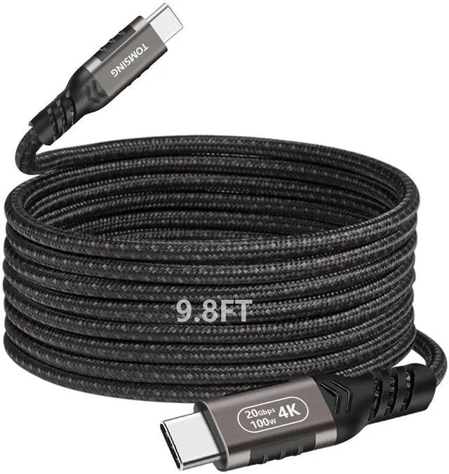 TOMSING USB C to USB C 100W Fast Charging Cable 9.8FT, USB3.2 20Gbps SpeedBraided Type C Charger Cord for iPhone 15 16 Pro Max, for Samsung Galaxy S24 S23,Tablets, laptops and MoreGunmetal
