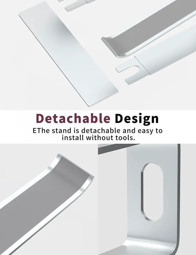 ^^ Easy Installation & Portable - This laptop stand can be easily disassembled into 3 parts, can be install in 2 steps. ^^ Heat Dissipation & Space Organized - The open design keeps your laptop from overheating, and allows more space for storing. You can organize your keyboard, mouse, or other office supplies under the thin stand.