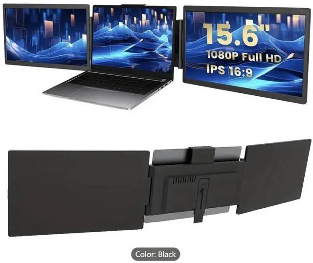 Ideal for work, travel, online classes, gaming, and video conferences ^^ Ergonomic Design - With its lightweight yet durable design and focus on ergonomics, Azeyou triple monitor for laptop helps boost productivity in a comfortable, customisable fashion. The slim monitors allow for easy transport while the adjustable stands provide flexibility to set up the perfect viewing angle, reducing eye strain during long work sessions. The stable and expandable mounting bracket can be easily placed on a laptop frame without the need for additional accessories such as magnets ^^ Premium Screen Display - With this Azeyou portable monitor, you can multitask efficiently and easily.