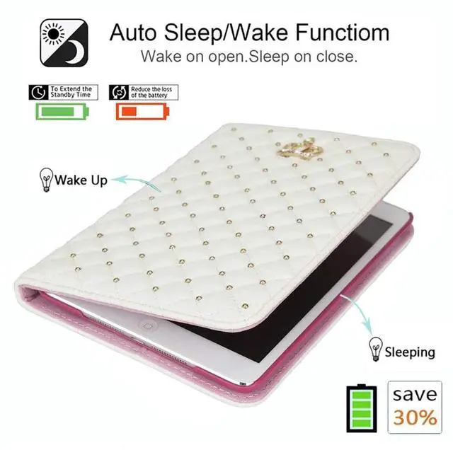 Case for iPad Air (3rd Gen) 10.5" 2019 / iPad Pro 10.5" 2017, PU Leather Shockproof 360 Full body Protection Flip with Smart Auto Sleep/wake up Kickstand, Stylish Crown Design rhinestonesCompatibilityCompatible with AppleiPad Air 3rd generation 10.5 inch 2019 (Model on the back: A2152 / A2123 / A2153 / A2154)Compatible with Apple iPad Pro 10.5 inch 2017 (Model on the back: A1701/A1709)Magnetic ClosureThe elastic closure strap which adds to the mag closure to keep the case closed and the device protected when not in use.