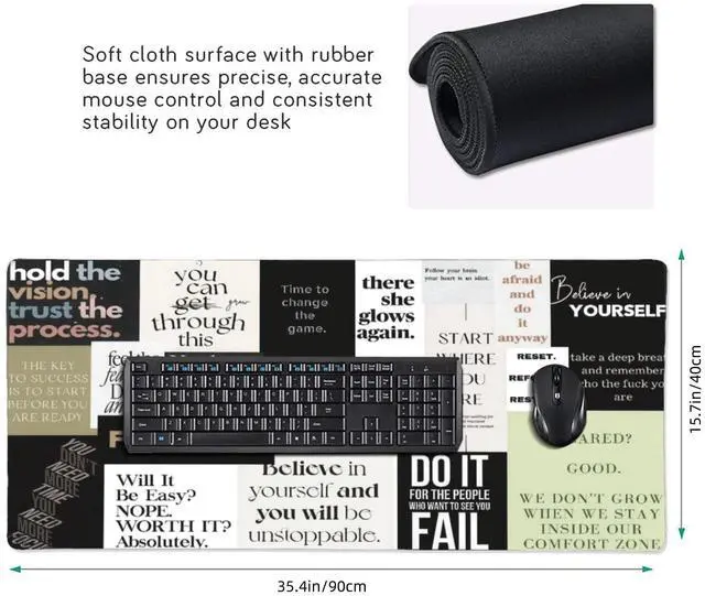 Inspirational Quotes Large Mouse Pad, Cool Gaming Desk Mat, XXL Keyboard Desk Pad Mat for Desktop, 35.4"x15.7" Non-Slip Base Big Mousepad with Stitched Edges