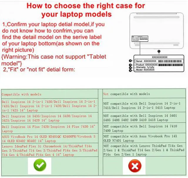 It is especially designed for Dell Inspiron 14 2-in-1 7440 7445 7430 7435, Case for Inspiron 14 5440 5445 5435 5430/Inspiron 14 5425 5420/Inspiron 14 2-in-1 7425 7420/Inspiron 14 Plus 7420 7430 14" Laptop, Case for ASUS VivoBook Pro 14 OLED M3401QC K3400PH/Vivobook S 14 OLED K3402 M3402 14" Laptop, Case for Lenovo IdeaPad Flex 5i Chromebook 14/ThinkPad T14s Gen 3/ThinkPad T14 Gen 3/ThinkPad P14s Gen 3/ThinkPad T14 Gen 4/ThinkPad P14s Gen 4/ThinkPad T14s Gen 4.