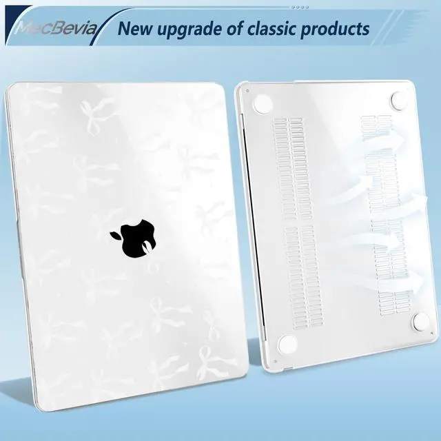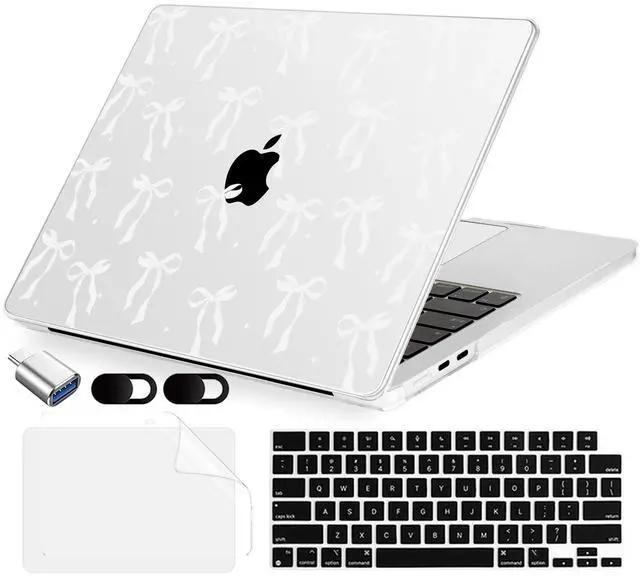MecBevia Compatible with MacBook Air 13 inch Case, M4 A3240/M3 A3113/M2 A2681 (Released 2025 to 2022), Hard Shell, Keyboard Cover, Screen Protector, Webcam Cover & Type-C Adapter, White Bow