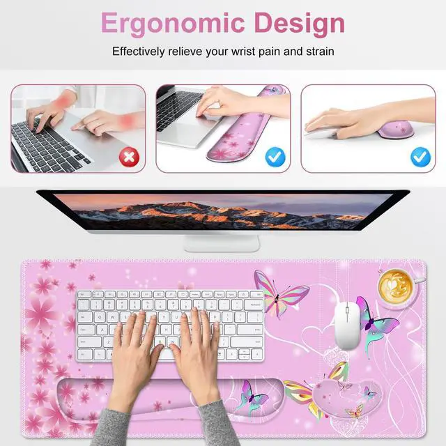 You deserve to have our comfortable typing relief mouse pad set 35.415. 7 IN Desk Mat + Keyboard Wrist Support + Mouse Wrist Rest + Coaster for DrinkMore unique pattern design desk pad set available for choice. A different mouse pad Will add some artistic personality to your life, unique style colors desk mat set will be a chic office desk decor and a good desk organizer, bring you a good mood, and increase work&study efficiency. This office desk accessories will be a wonderful gift for friends, family, classmates, and colleagueFeatures Wrist rest for computer keyboard and mouse with ergonomic design, filled with breathable memory foam materials, plays a role in minimizing discomfort and soreness from work and study.
