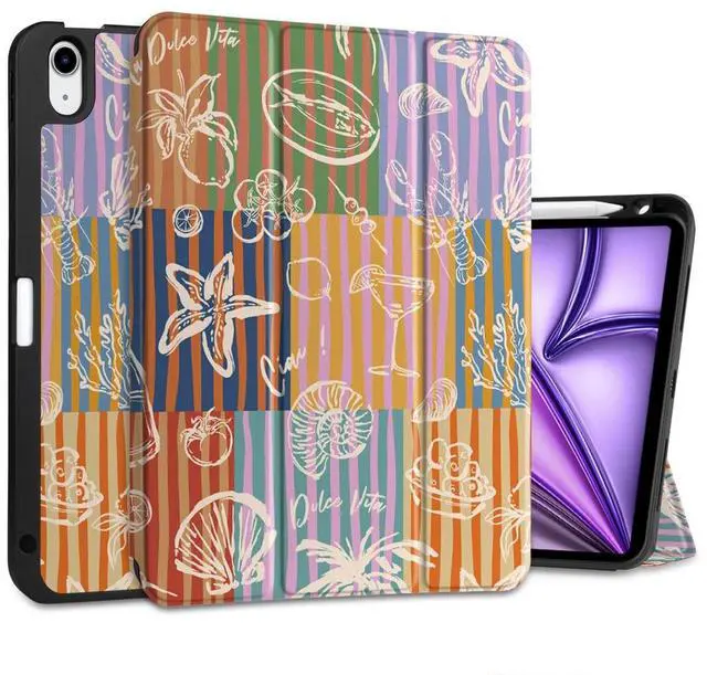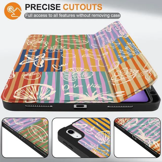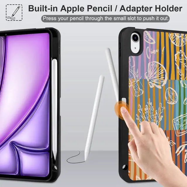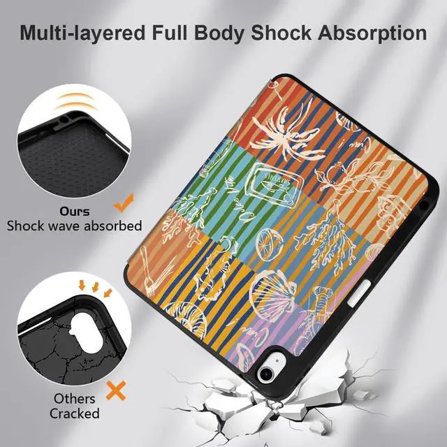 Generation 10.9 -inch (2020) (Model: A2316, A2324, A2325, A2072). ^^ Full Protection -- Constructed with a premium PU exterior, microfiber lining, and soft TPU back cover, offering complete protection against shocks, drops, and scratches. ^^ For Apple Pencil Charging -- Features a built-in pencil holder and adapter slot, designed for charging and pairing with the 2nd Gen Apple Pencil. Keep your Pencil and adapter easily accessible and conveniently carry them with your device. (Case only; other accessories not included. ) ^^ Professional Design -- The inner layer features a honeycomb grid pattern that dissipates over 80% of heat, extending the iPad's lifespan and improving shock absorption. The multi-layered painting process ensures durability and maintains an attractive appearance under normal use. ^^ Convenient Function -- Features sensitive Auto Wake/Sleep for energy savings. The slim, lightweight tri-fold stand offers both viewing (65) and typing (30) angles. Solid construction without bulk, and precise cutouts provide easy access to all buttons.