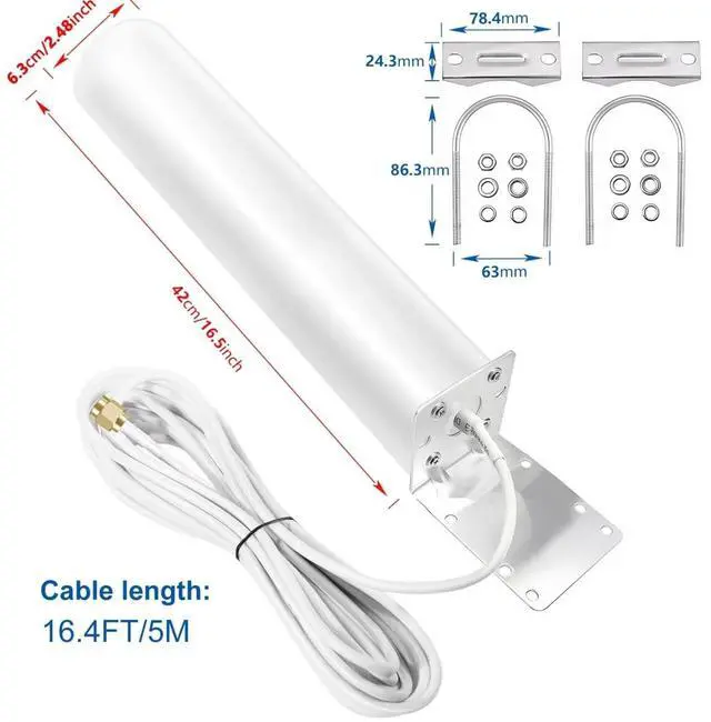 Enhance your mobile connectivity with this powerful 12dBi wide-band antenna designed for 5G and 4G LTE networks. Operating across an impressive frequency range of 698-6000MHz, this versatile outdoor antenna is compatible with major carriers including Verizon, AT&T, and T-Mobile. The high-gain design helps boost signal strength for improved internet performance in RVs and homes. Featuring a durable outdoor construction and SMA male connector, this antenna is specifically engineered to work with cellular modems and routers. Perfect for areas with weak signals, it helps maintain stable connections for your mobile devices and home internet setup.