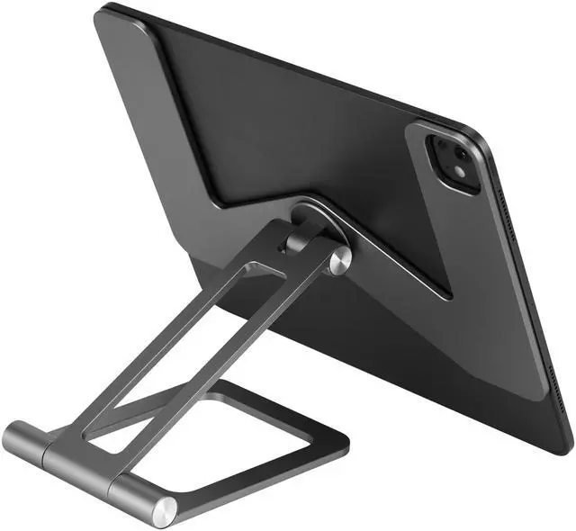 This is a lightweight magnetic stand for iPad Pro. It can be folded and stored in your backpack. Weighing only 1.3 pounds, it is extremely portable yet sturdy.