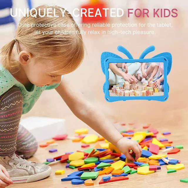 Material: Made with durable heavy duty EVA foam. Light weight, wear-resistant, shockproof, environmentally friendly, non-toxic, non-slip and strong grip. Provides double-layer 360-degree body protection while maintaining lightness. The thicker four corners protect the iPad and no longer worry about your baby accidentally falling off the iPad. The unique butterfly wings designed as a stand: the butterfly's wings are adjustable stand that allows the baby to watch videos and learn, keeping the baby at a suitable distance and protecting the eyes. At the same time, the wings can be folded, which saves space and is easy to carry. Full body protector EVA foam. The EVA design is 3 mm higher than the screen and is equipped with a shock-absorbing screen protector bumper. Double-layer thick silicone in the corner prevents falls and other impacts. It will fix the tablet in the EVA foam, and the huge impact will not cause the iPad to fall out. It doesn't have a plastic sheet to cover the screen, allowing you to enjoy smooth and fast screen touch. Gifts for children. Maybe you are looking for a sturdy tablet case for your baby. Lightweight, strong protection, easy to carry, environmentally safe, very suitable for children, boys, girls, kindergartens, schools. Choose from a variety of colors and come and pick a Christmas present or birthday present for your baby.