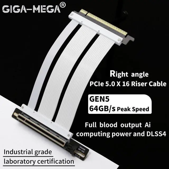 GIGA-MEGA PCIe X16 GEN5 Right Angle Riser Cable PCIe 4.0 and 5.0 with GPU Vertical Mount Bracket for RTX4090,RTX5090D, RX7900XT, RX9070 ATX (18CM GEN5 White)
