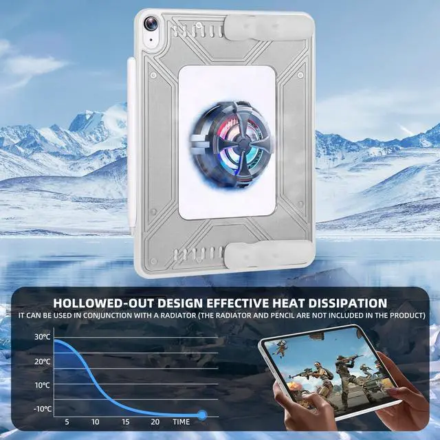 Excellent Heat Dissipation & Convenience: The hollowed-out back design accelerates heat dissipation while being compatible with external coolers. (Cooler not included. ) It supports quick unlocking via Touch ID and auto wake/sleep function, making it more user-friendly than regular cases for iPad. ^^ Versatile for Multiple ScenariosMore than just a practical gaming case designed for iPad 10th Gen and iPad 11th Gen, it provides reliable drop and scratch protection for daily use. It also suits gamers' usage needs perfectly, making it a great choice for both daily and gaming-focused scenarios to meet different user groups' demands. ^^ Durable Material for Strong ProtectionMade of high-toughness materials, it delivers excellent drop and scratch resistance. It meets the general protection needs of case for ipad 10th generation and ipad cover 11th generation, balancing practicality and durability.