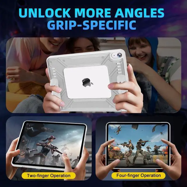 Grip Experience: This professional-grade case for iPad Air includes detachable silicone gaming handles, ensuring a stable and non-slip hold during gameplay. Its a must-have accessory to enhance comfort and control in your gaming sessions. ^^