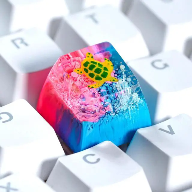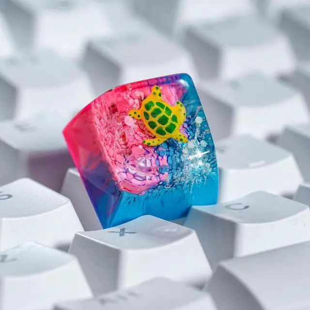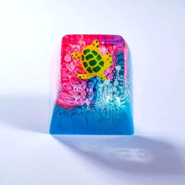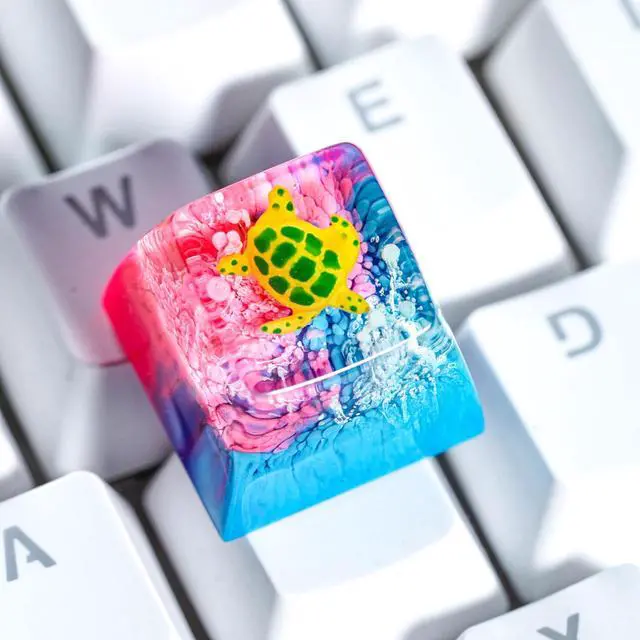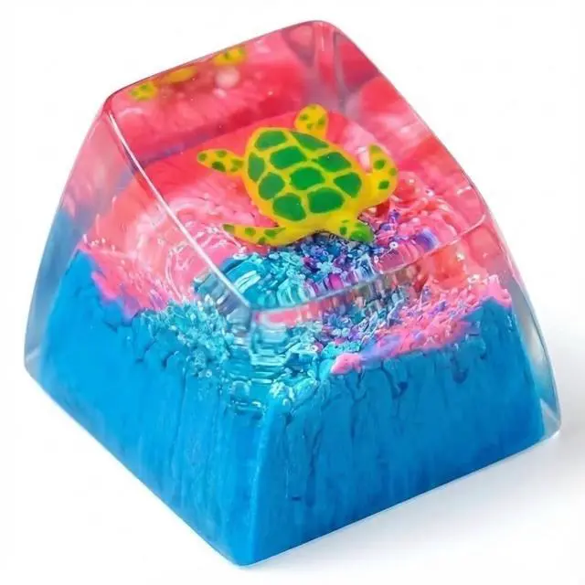 Sea Turtle Artisan Keycap Blue Pink Coral Reef R1 SA Profile Custom Sea Creatures Keycaps 1U ESC Handmade Gaming Resin Key Cap Cherry MX Switch Compatible Mechanical Keyboard Turtle Lover Gift