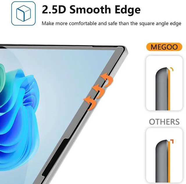 Whether you're swiping, sketching, writing notes, or switching apps, the touch remains fluid and consistent. ^^ Effortless Installation MEGOO screen protector automatically adheres to your Microsoft Surface Pro (9/10/11/8/X). Combined with MEGOO's included tool kit, the setup is clean and manageableeven for first-timers. application ^^ Ultra-Smooth Surface for Everyday ComfortFeatures a polished glass surface with an anti-fingerprint coating, offering a silky-smooth glide for finger users ^^ Case-Friendly Design Ample space left to accommodate your case, ensuring MEGOO tempered glass screen protector remains securely in place without any squeezing